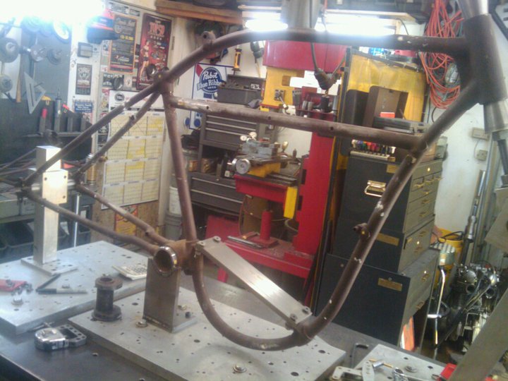 Here is the set up for cutting the taper in the bottom frame rail. There is a .110 taper over 8.625 inches. I don't know why anyone would even bother to design such a small taper into a manufactured part. I have no choice but to replicate it, since I want the frames to be perfect. This is a finished piece after cutting and filing. It turned out really well. The wall thickness at the small end is still .125 , so it is far superior to an og frame.